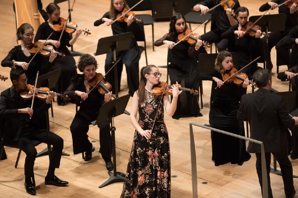 Also heard before the break was the first movement of Erich Wolfgang Korngold’s 1947 Violin Concerto, which has gained popularity in the 21st century. Abby Walsh played it in a fearlessly romantic style. One had the impression of a performer applying herself intently to the phrase at hand rather than rushing toward the next one.
