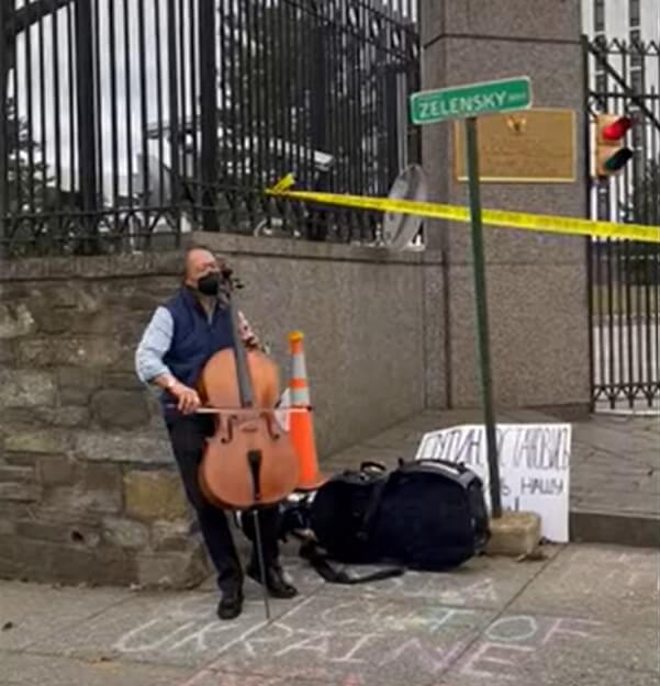 - Le violoncelliste Yo-Yo Ma est allé joué devant le consulat russe à Washington, où une fausse enseigne de rue « President Zelinsky Way » a été ajoutée par des activistes.
