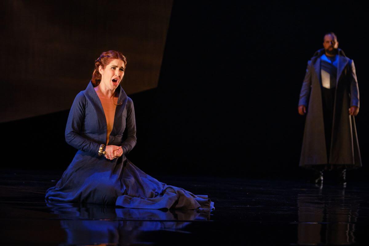 Des changements surviendront dans cette toile de fond aux actes suivants, mais le tout reste minimaliste, sans éclat et lugubre. Un décor désincarné qui nous donne peu d’indices sur l’époque, les lieux, la symbolique, le sens de l’œuvre ou de quelconques références culturelles, comme si on avait voulu créer une trame générique que l’on pourrait recycler plus tard dans une autre production. Les costumes sont d’époque, mais quelconques.