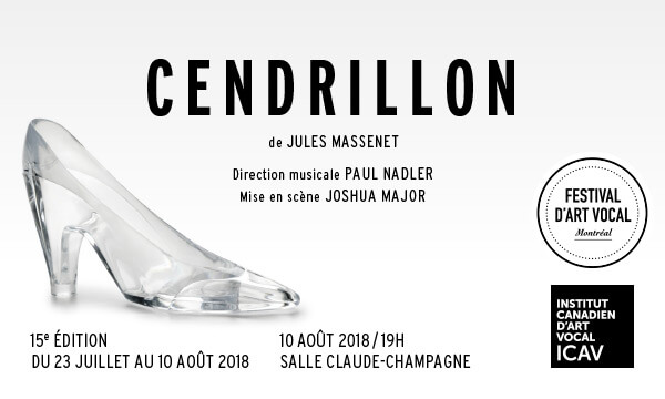 L’Institut Canadien d’Art Vocal, ICAV, tient annuellement à Montréal depuis 2004 un stage international de perfectionnement pour jeunes chanteurs d’opéra. ICAV a un double mandat. Il offre une formation de haut calibre aux meilleurs chanteurs de la relève lyrique canadienne et internationale. Il présente au public une programmation variée et captivante au Festival d’Art Vocal de Montréal, une dizaine d’événements brillamment préparés, dont un opéra mis en scène. Cette année, ce sera Cendrillon de Massenet.