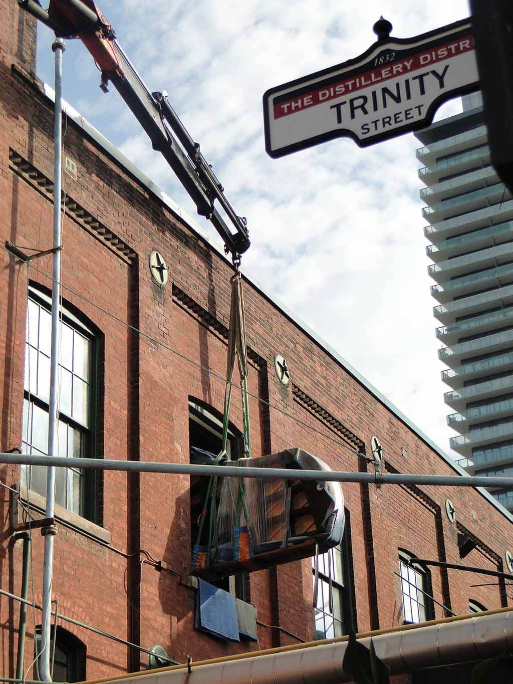 The massive piano, which includes eight extra keys and is considered one of the most expensive in the world, was installed with a special crane loaded through the third-storey window of the Tapestry Opera’s Ernest Balmer studio.