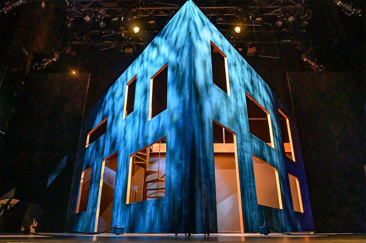 Steve Lucas’ set and lighting design is simplicity plus. Three flats with cut out windows and doors give the illusion of the Goodman’s suburban house. The back wall slides open and shut to provide surprise entrances and exits. A circular staircase to an upper balcony gives perspective. Natalie, for example, spends much time up there. Set pieces, as needed, are wheeled on and off. For example, the doctor rolls in two chairs for her sessions with Diana. Director Philip Aiken has ensured prompt efficiency in terms of the instant scene changes. The hidden five-member band under conductor David Terriault provides the excellent musical accompaniment.