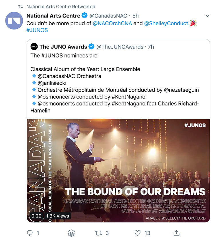 • Canada’s National Arts Centre Orchestra/Orchestre du Centre National Des Arts du Canada, conducted by Alexander Shelley, The Bound of our Dreams