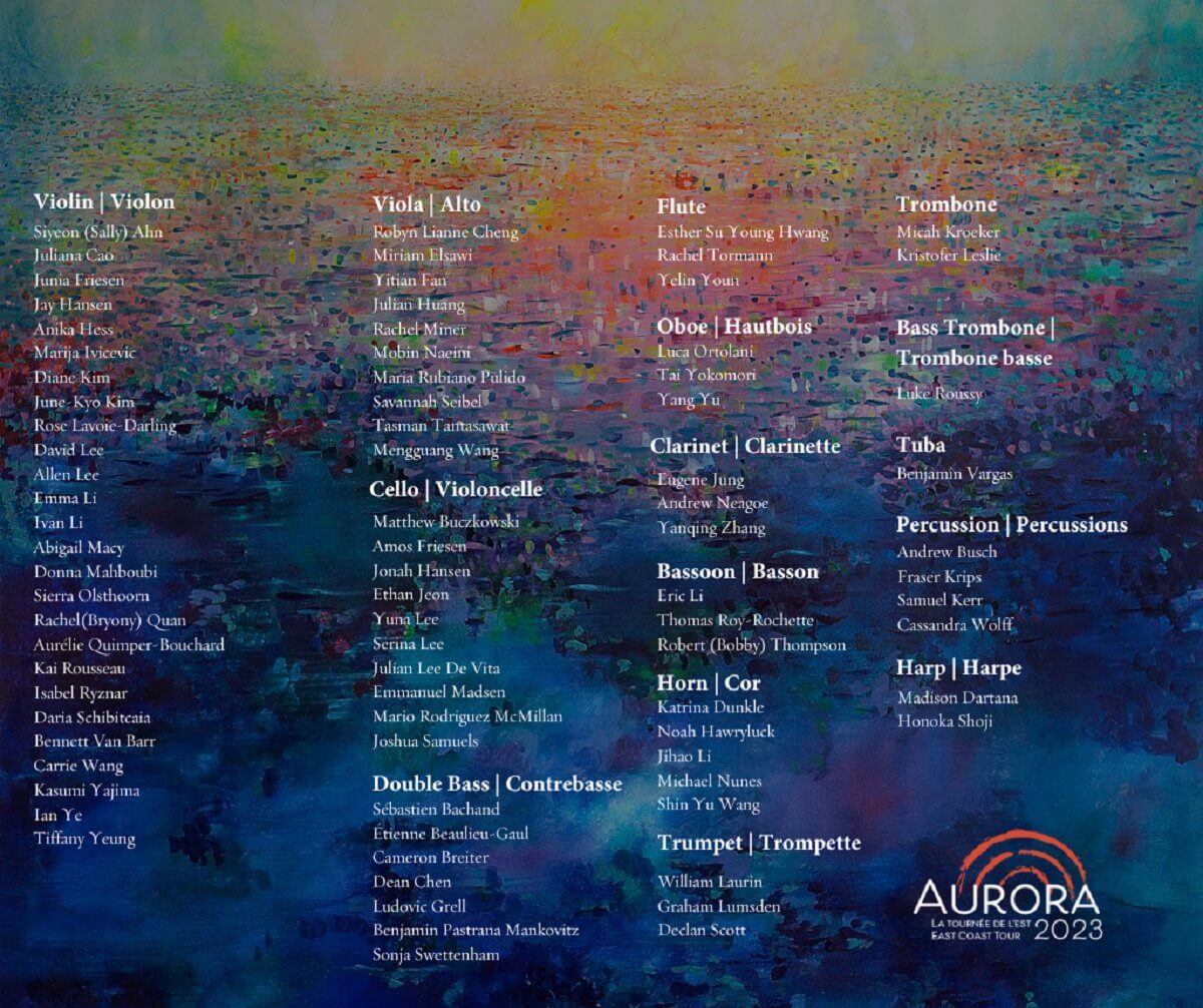 The Aurora tour begins Friday, July 14 in Kingston, Ontario, heads east, and then loops back to a grand finale on August 2 in Toronto’s Koerner Hall. This year, the NYO Canada has adopted an across the board PWYC policy to keep ticket prices accessible to all.