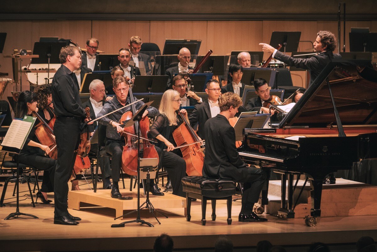 Before intermission (and after a lengthy stage rearrangement) we heard Beethoven’s Concerto for Piano, Violin and Cello, a.k.a. the Triple, a score that is somewhat neglected owing to the trouble and expense of hiring three soloists. The TSO recruited two from its own ranks by engaging principal cello Joseph Johnson and concertmaster Jonathan Crow as well as pianist Jan Lisiecki, a TSO spotlight artist this season.