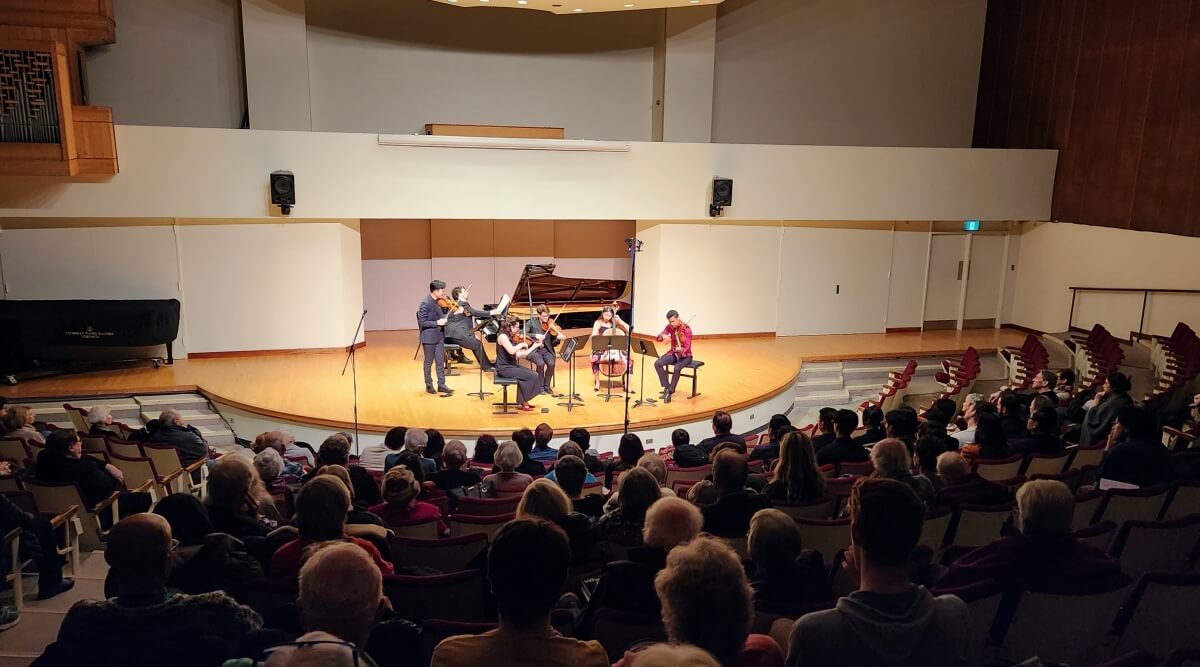 A surprising footnote is necessary. Cellist Joanne Yesol Choi announced from the stage that Georges and second violin Tobias Elser were playing their last concert with the group, which was founded in 2018 at Jacobs School of Music at Indiana University. Seems a shame. The search for new members is reportedly under way.