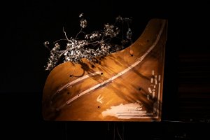 Using four pianos and found natural materials connected through a series of specialized transducer speakers, this project explores resonance as a meditative practice.